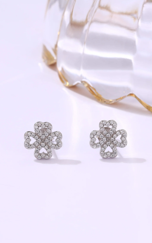 Shine with sophistication in our sterling silver earrings, adorned with a lovely heart and flower design. These exquisite earrings seamlessly merge romance and nature, creating an ideal accessory for any event.
