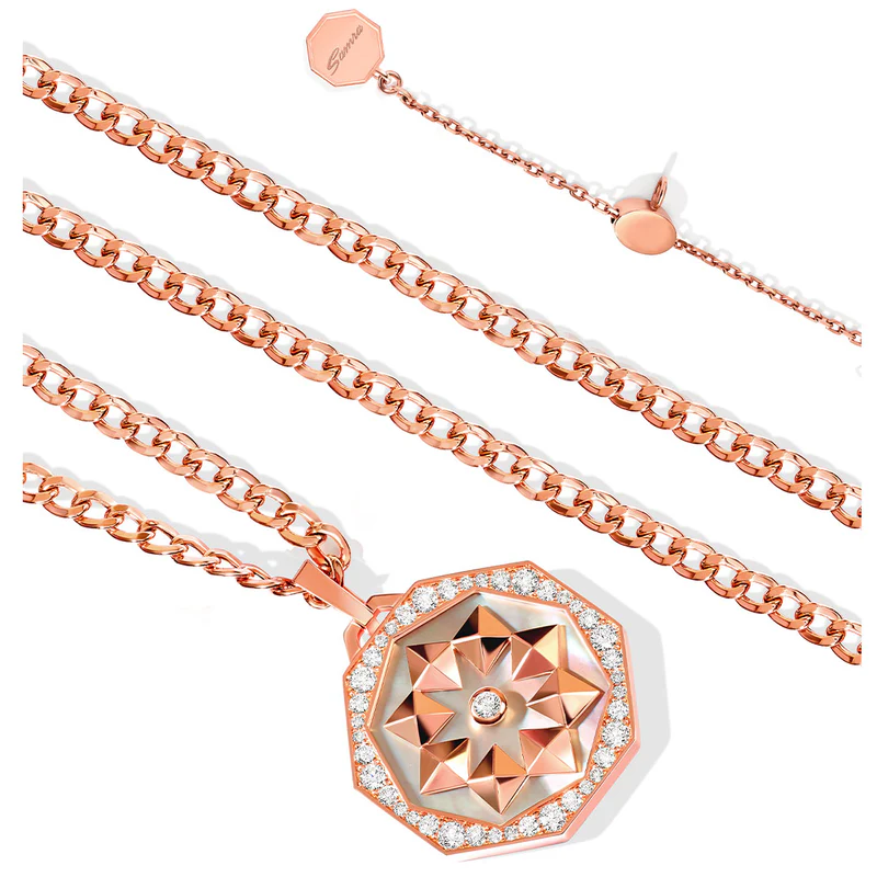 A legendary icon inspiring women to discover their own sense of direction. Thaman, a masterpiece of precision and intricate detail, expresses the timeless allure of geometry and artistry through a fusion of charm and modernity. Thaman, derived from Arabic, signifies not just value but Samra’s interpretation of the craftsmanship and innovative glamor in a quest for geometric flair.